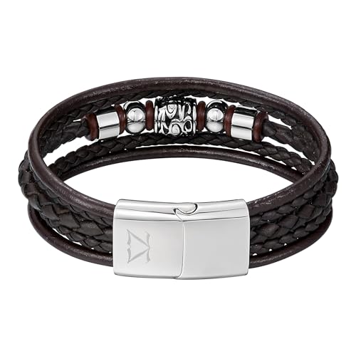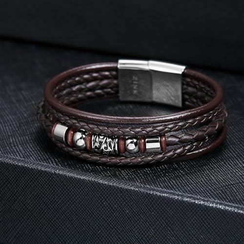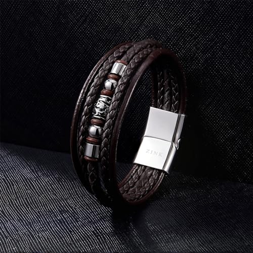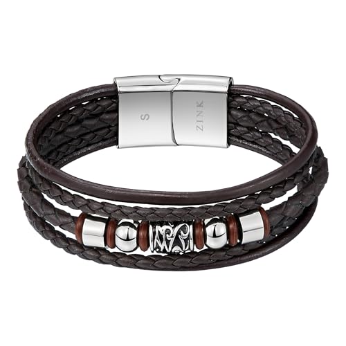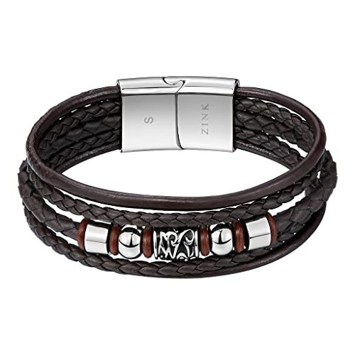 ZINK - إسورة من زينك للرجال، مصنوعة من الفولاذ المقاوم للصدأ والجلد، بلون بني وتصميم عصري، مقاس 19 سم