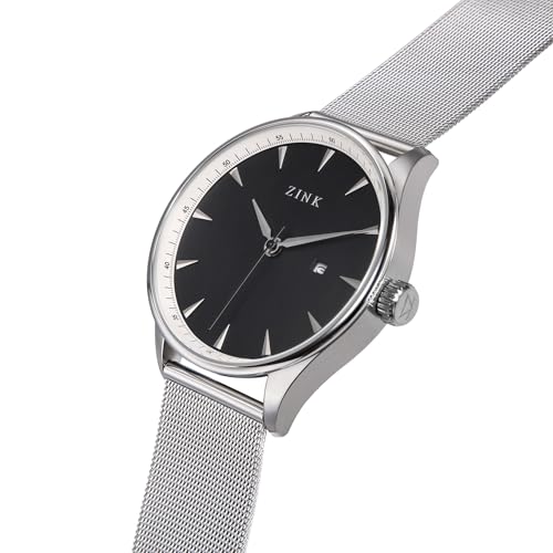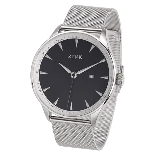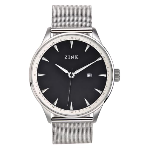 ZINK - ساعة للرجال موديل ZK127G1MS-26 زينك، تناظري، بمينا أسود، بسوار فضة