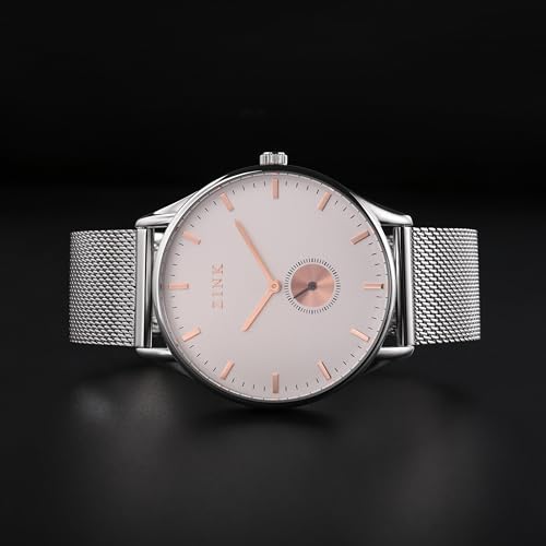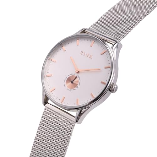 ZINK - ساعة للرجال موديل ZK130G5MS-16R زينك، تناظري، بمينا أبيض، بسوار فضة