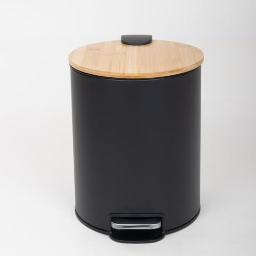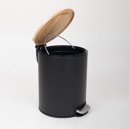 Zinnia - سلة مهملات من البامبو سعة 5 لتر مع آلية إغلاق لطيفة وقاعدة مضادة للانزلاق من زينيا، لون أسود