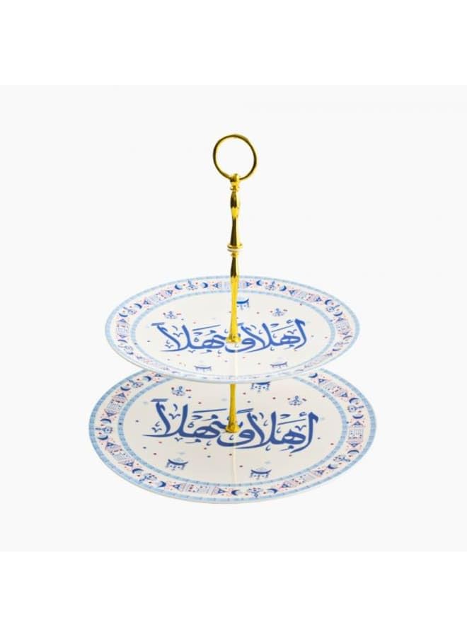 generic - حامل كيك بطبقتين من زينيا روزا من زينيا اهلا دبليو سهلان - بورسلين ازرق - تقديم انيق