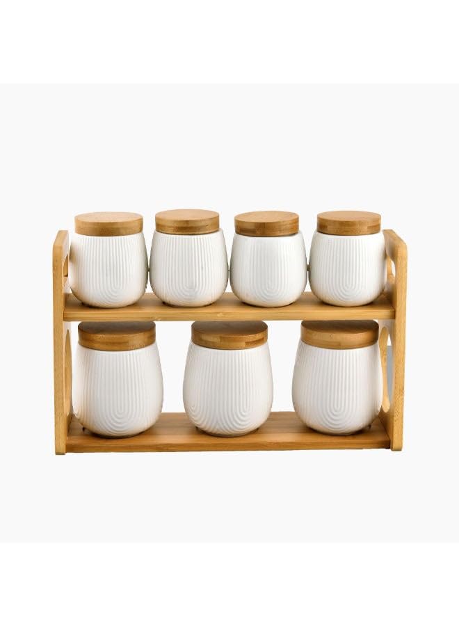 Generic - طقم برطمانات مع حامل خشبي من زينيا مكون من 7 قطع