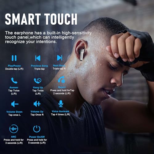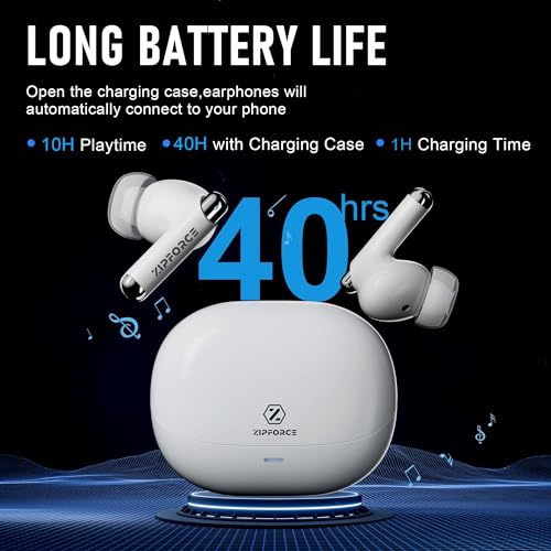 ZIPFORCE - سماعات أذن لاسلكية حقيقية داخل الأذن بالكامل بلوتوث 5.3 4 ميكروفونات اي ان سي مكالمات واضحة، سماعات أذن بلوتوث تحكم باللمس 40 وقت تشغيل، مقاومة للماء IPX6 TWS، سماعات أذن خفيفة الوزن من زيب فورس