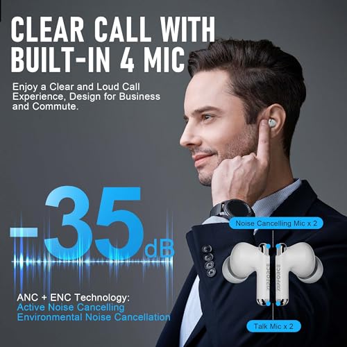 - 【4 ميكروفونات وتقنية اي ان سي لتقليل الضوضاء عند المكالمات】: تحتوي كل سماعة رأس على ميكروفونين مدمجين، مجهزين بتقنية تقليل الضوضاء البيئية (ENC) التي يمكنها منع 80% من ضوضاء الخلفية المتداخلة في بيئة الاتصال، وتعزز صوت الإنسان بذكاء من خلال الميكروفونات الأربعة، تلتقط سماعات الرأس اللاسلكية الصوت بدقة وتوفر عزلًا فعالًا للضوضاء لتحقيق مكالمات صوتية واضحة بدون فقدان بين الطرفين، مما يجعل الاتصال أكثر كفاءة.