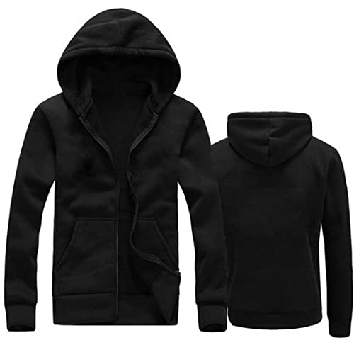 Generic - جاكيت سويت شيرت بغطاء رأس وسوستة - اسود أسود XL ياقة عالية جدًا الرجال
