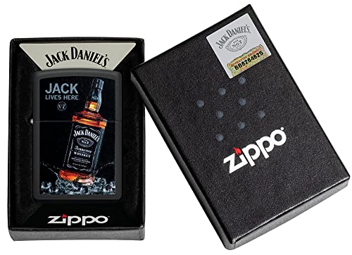 Zippo - ولاعة جيب جاك لايفز هير من سلسلة جاك دانيال بلون اسود غير لامع من زيبو