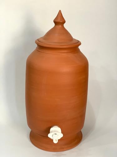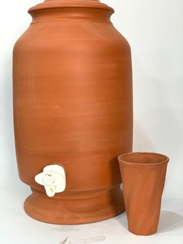Generic - زير فخاري مزود بصنبور مع كوب – صناعة يدوية من الطين الطبيعي
