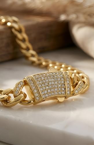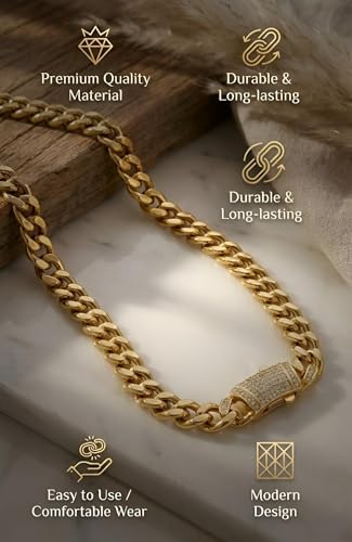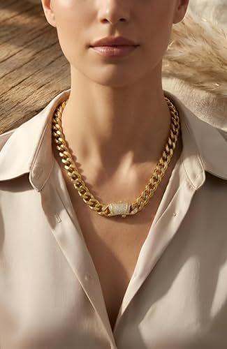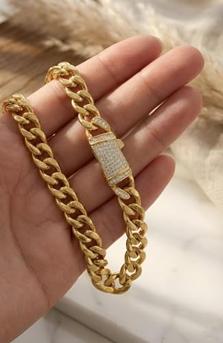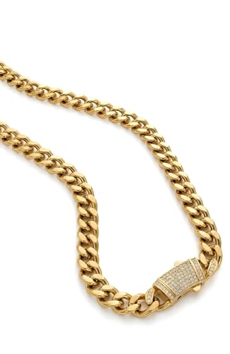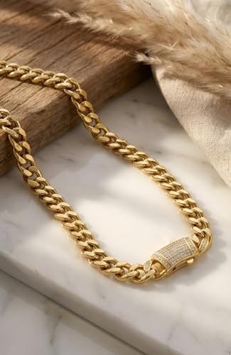 Generic - سلسلة مزينة بالزركون - قلادة من الستانلس ستيل بلمسة نهائية ذهبية مع نمط حلقات رقيق، متينة ومقاومة للبهتان، مثالية لاكسسوارات يومية أنيقة.