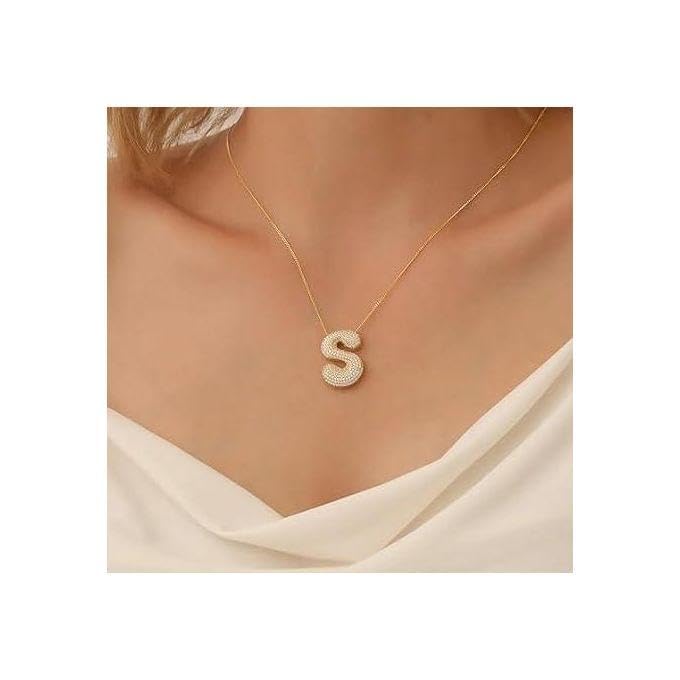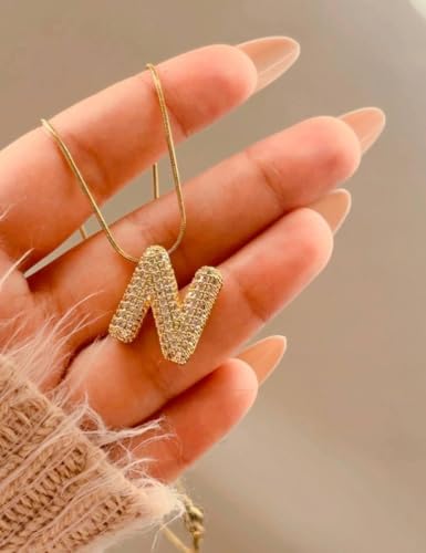 Generic - عقد من الزركونيا - تعليق حروف ذهبية اللون مع احجار زركونيا مكعب لامعة، سلسلة ثعبان أنيقة، اكسسوارات متعددة الاستخدامات للمناسبات الرسمية، الارتداء اليومي او كهدية خاصة.