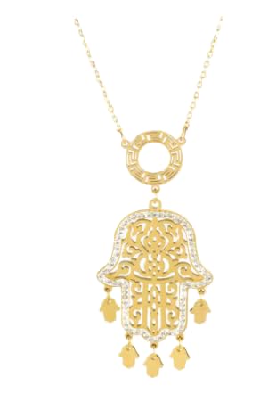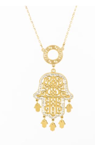Generic - عقد بقلادة يد من الستانلس ستيل من الزركونيك