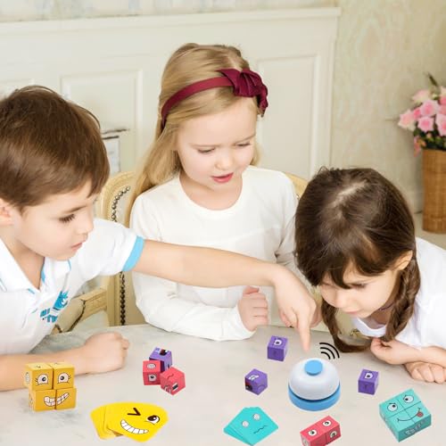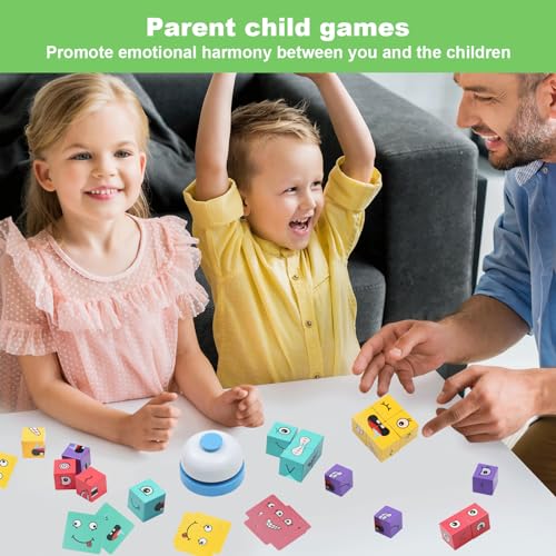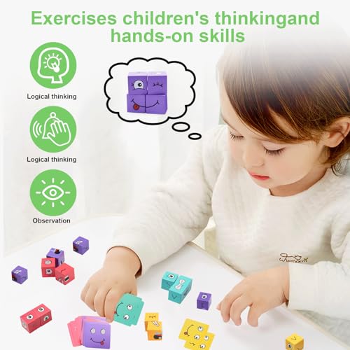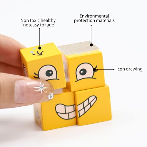 ZITUZY - أحجية مكعبات خشبية، أحجية مكعبات خشبية للتعبير، مكعب سحري لتغيير الوجه أحجية ثلاثية الأبعاد، للأطفال من سن 3 سنوات، لعبة تفاعل، لعبة مطابقة خشبية لتفكير الأطفال من زيتوزي