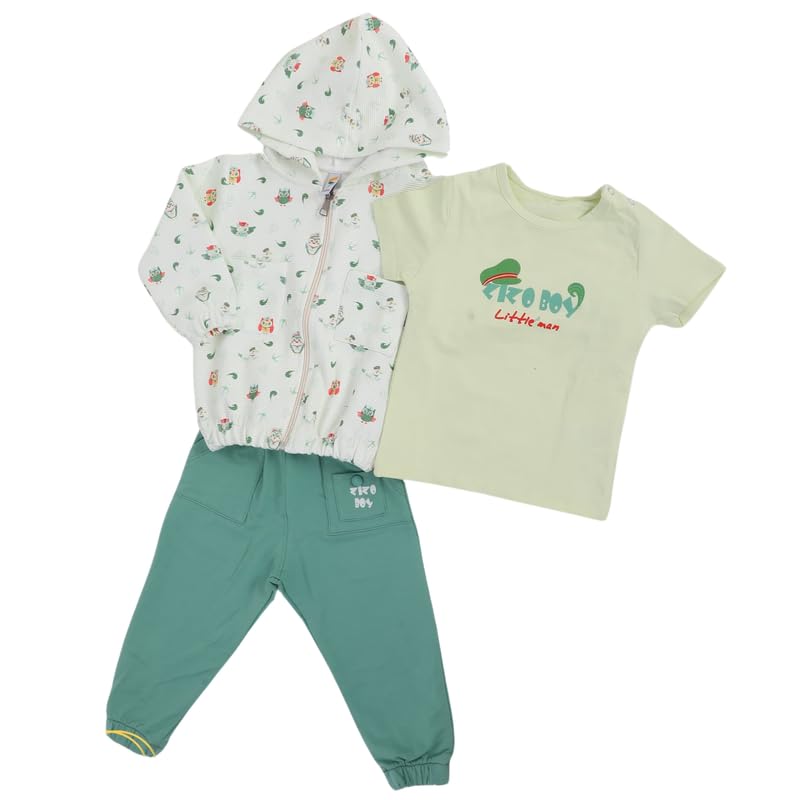 Zizo - طقم للأولاد البيبي مكون من تيشرت بأكمام قصيرة وجاكيت خفيف الوزن وبنطلون مصنوع من قماش قطني من زيزو كيدز، بيج، 3 قطع
