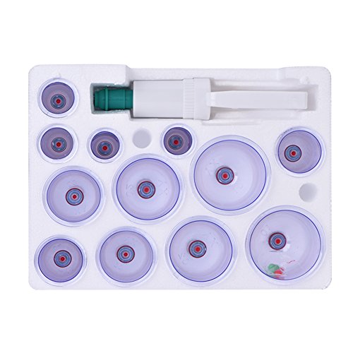 ZJchao - مجموعات علاج الحجامة، 12 كوب، مجموعة الصينية تدليك الفراغية، معدات البلاستيكية مع مقبض الضخ، الطبية لتخفيف الالم والاسترخاء، أبيض، يدوي