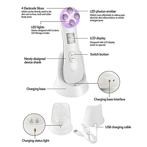 - ♡ وظيفة من 6 أوضاع إضاءة LED - ضوء أحمر، أكياس عيون ناعمة وجيدة للعناية ببشرة العين؛ الضوء الأخضر، يقيد إنتاج الميلانين المفرط ويجعل البشرة أكثر بياضًا؛ الضوء الأزرق، مضاد للالتهابات، يلطف المسام القابلة للسحب أو البشرة الدهنية؛ أصفر فاتح، بشرة لامعة؛ وردي فاتح، يبيض البشرة، مناسب للبشرة الداكنة، ضوء وردي مضيء وردي، يقوي تسلل سوائل تصفيف الشعر أو جل الشعر.