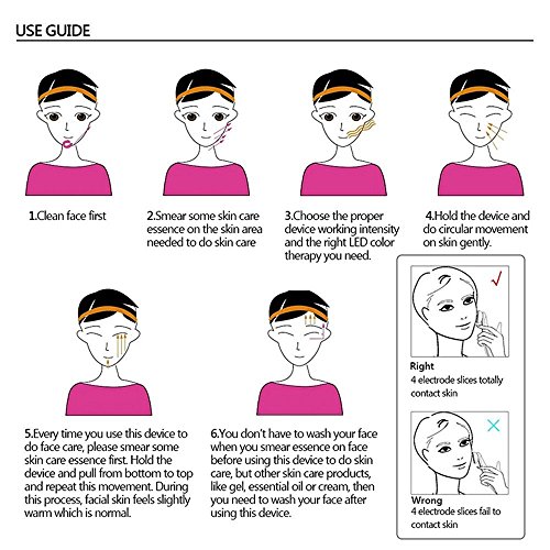 - ♡ مجموعة متنوعة من الوظائف: أربعة رؤوس معدنية موصلة عالية الجودة مناسبة لجميع أنواع البشرة ولن تسبب تلف الجلد. تم تصميمها مع 4 أوضاع للشدة الحالية و6 أوضاع إضاءة LED للألوان، حيث ستحصلين أنماط مختلفة على تأثيرات مختلفة، ويمكنك الاختيار وفقًا لاحتياجاتك.