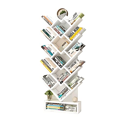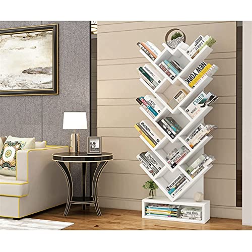 ZJCQA - خزانة كتب عصرية على شكل شجرة، رف كتب قائم على الأرض، رف تخزين منظم لغرفة المعيشة، ديكور المكتب المنزلي من ZJCQA، لون أبيض
