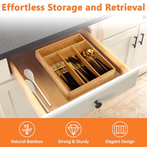 - منظم أدوات المائدة الفضية من البامبو صديق للبيئة: مصنوع من البامبو مرتفع الجودة والمستدام، منظم الأدراج هذا ليس متينًا فحسب بل أيضًا صديق للبيئة. تضيف اللمسة النهائية الطبيعية لمسة من الأناقة إلى المطبخ وهو سهلة التنظيف، مما يجعل الصيانة سهلة.