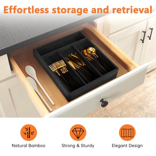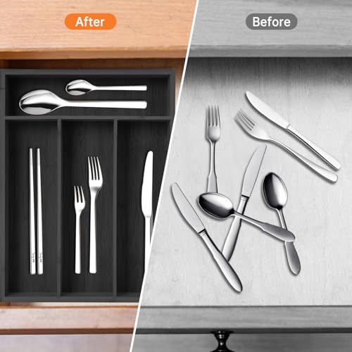 - منظم أدوات المائدة من الخيزران الصديق للبيئة: مصنوع من الخيزران عالي الجودة والمستدام، منظم الأدراج هذا ليس متينًا فحسب ولكنه صديق للبيئة أيضًا. تضيف اللمسة النهائية الطبيعية لمسة من الأناقة إلى مطبخك وهي سهلة التنظيف، مما يجعل الصيانة سهلة.