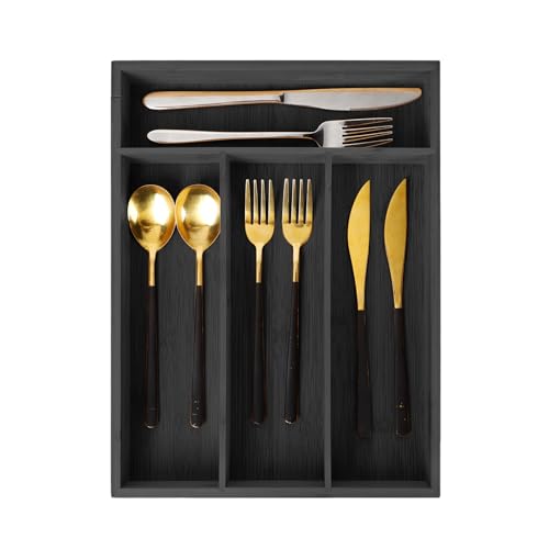 ZJYOUZHU - منظم ادوات المائدة الفضية من الخيزران من زجيوزهو، منظم ادراج ادوات المطبخ الخشبي، منظم درج ادوات المائدة، حامل ادوات تناول الطعام وصينية ادوات المائدة مع فواصل ادراج مخددة (4 فتحات، طبيعي)