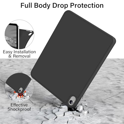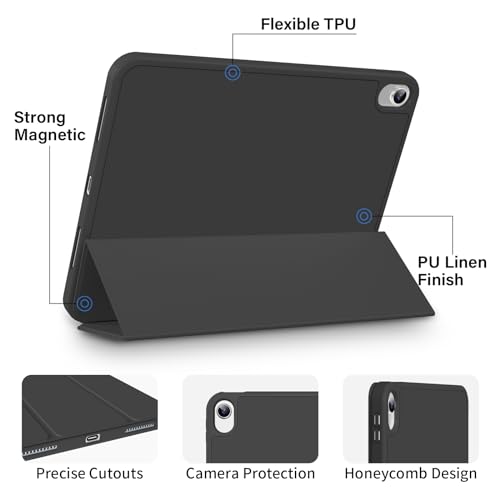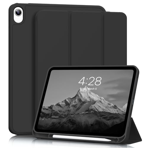 ZKTUYU - جراب لجهاز اي باد الجيل العاشر 2022 10.9 بوصة من زد كيه تي يو واي يو، غطاء واقي رفيع مع حامل قلم، يدعم خاصية التعرف باللمس، خاصية التنبيه/النوم التلقائي، متعدد الطي، أسود