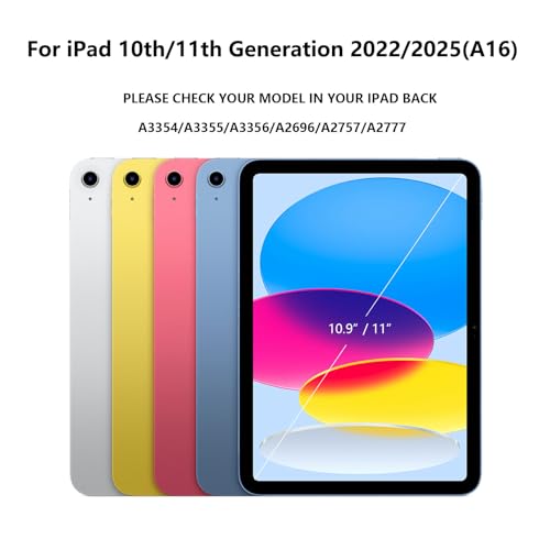 - [التوافق] جراب حماية لجهاز اي باد الجيل العاشر 10.9 بوصة 2022؛ تناسب موديلات ايباد: A2696 A2757 A2777. كما أنه غير متوافق مع أي أجهزة أخرى. يرجى التحقق من الجزء السفلي الخلفي لجهاز ايباد الخاص بك للعثور على رقم الموديل