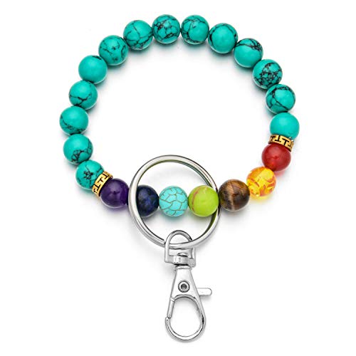 ZLYSF - سوار معصم من خرزات الشاكرا ال7 بسلسلة مفاتيح خرز مالاكيت طبيعي مع انواع اخرى للاستشفاء وطقوس المالا واليوجا Medium زد ال واي اس اف