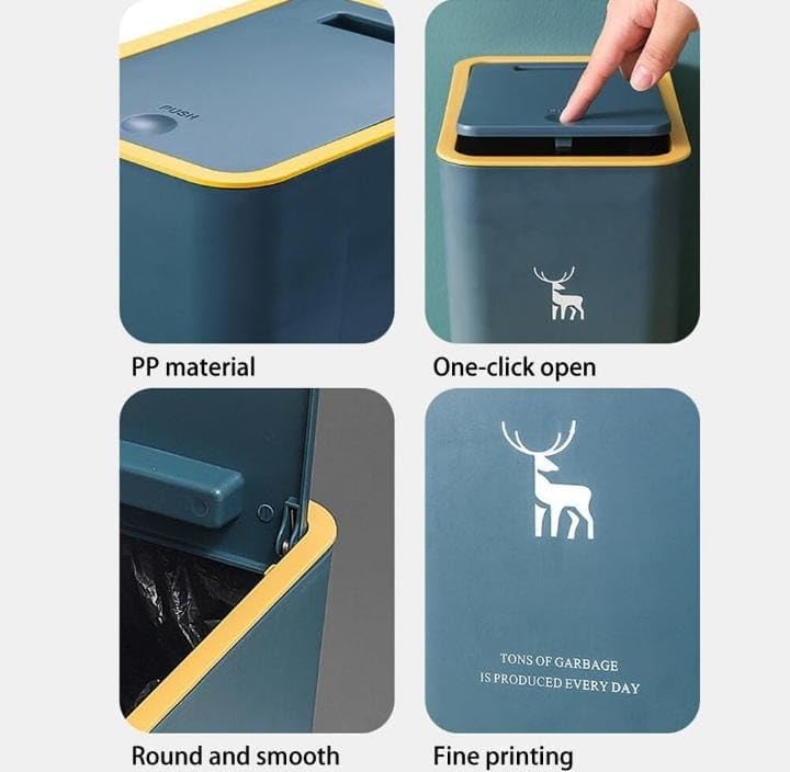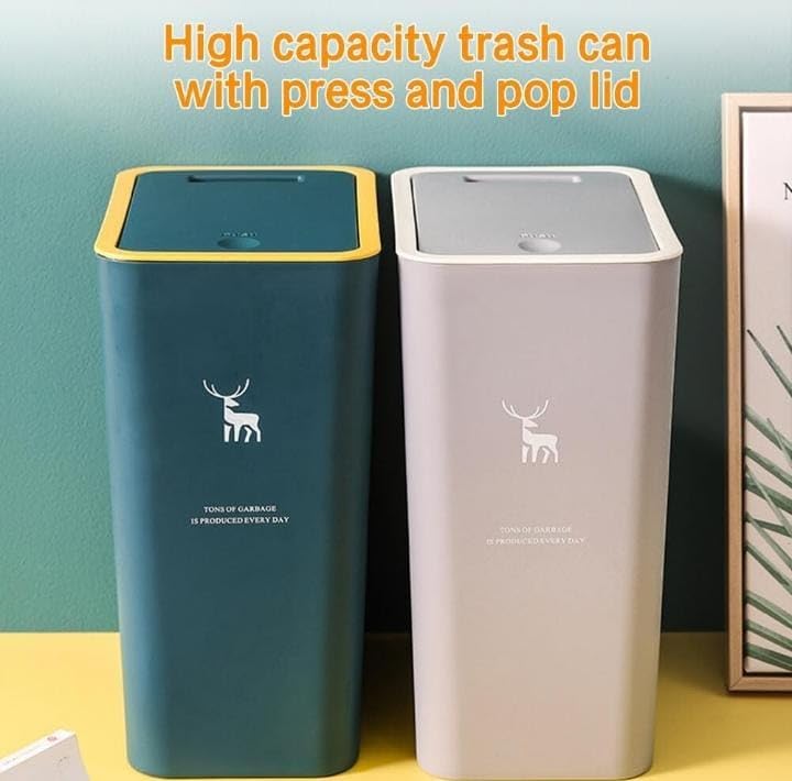 - 【صناديق قمامة بغطاء منبثق】غطاء بتصميم منبثق بسيط ومريح. ما عليك سوى الضغط على الزر لفتح الغطاء أو إغلاقه. يمكن للحلقة البلاستيكية تثبيت كيس القمامة ومنع كيس القمامة من الانزلاق.