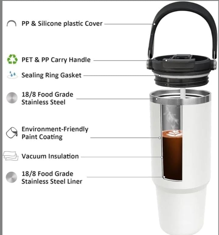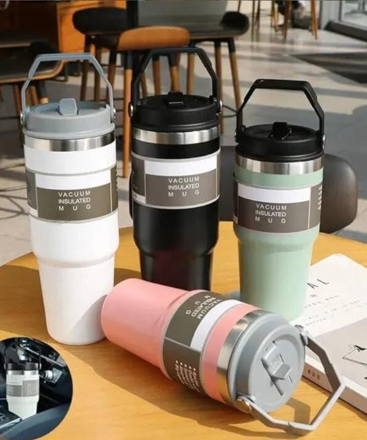 - ⭐تصميم مانع للتسرب: يتميز هذا الكوب المعزول بسعة 30 اونصة/ 890 مل بمقبض وشفاطة آمنة مانعة للتسرب، مما يمنع الانسكابات ويضمن تجربة خالية من الفوضى، سواء كنت تستخدمه أثناء التنقل أو في المنزل☕🧋.