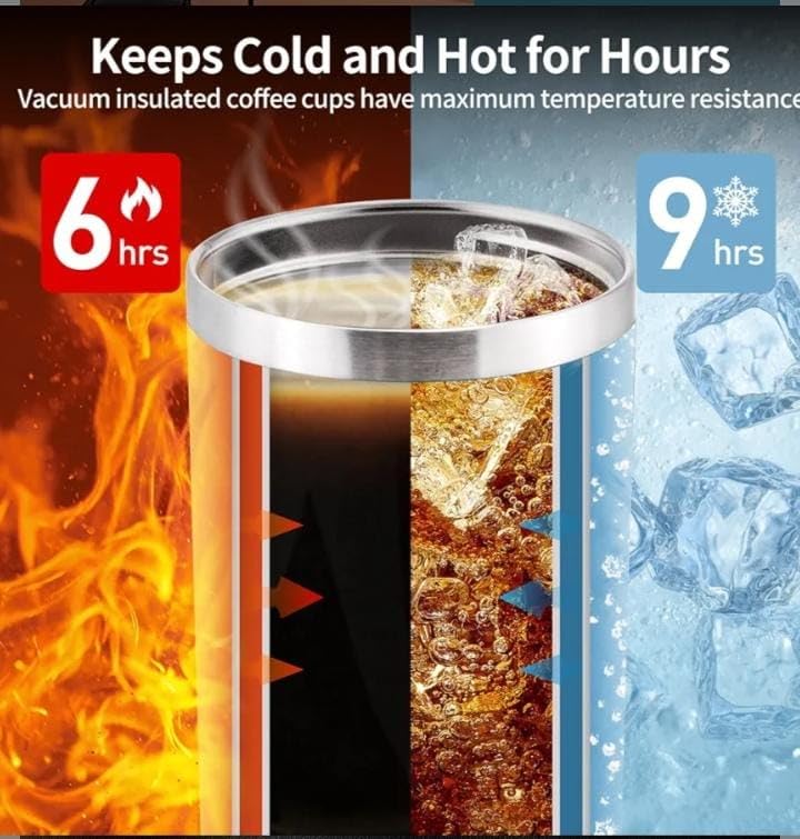 - ⭐هيكل فاخر معزول: مصنوع من الفولاذ المقاوم للصدأ مزدوج الجدار محكم الغلق بتفريغ الهواء، يحافظ هذا الكوب على المشروبات ساخنة لمدة تصل إلى 6 ساعات وباردة لمدة تصل إلى 12 ساعة، مثالي للترطيب طوال اليوم☕🧋.