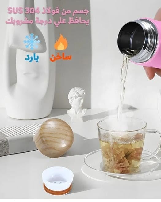 - تصميم بمصفاه الشاي:تصميم بمصفاه شاي يسمح لزجاجة المياه هذه ليس فقط للاستخدام القهوة أو الحليب لتخمير الشاي وغرس الفاكهه,ممايتيح للمستخدمين الاستمتاع بمشروبات منعشة ولذيذة ف نفس الوقت.