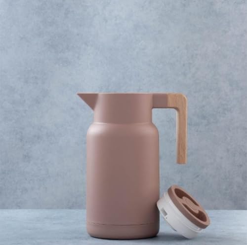 ZAL ZAIDAN - ترمس حراري وعاء قهوة حراري بسعة 1 لترمن زد ال زيدان مع عزل مفرغ مزدوج الجدار مع مقبض خشبي- تصميم مقاوم للتسرب يضمن الاحتفاظ بالحرارة والبرودة بشكل ممتاز لمشروباتك. (Beige)