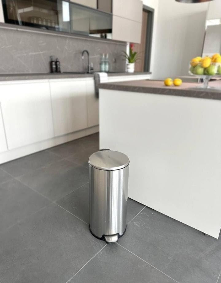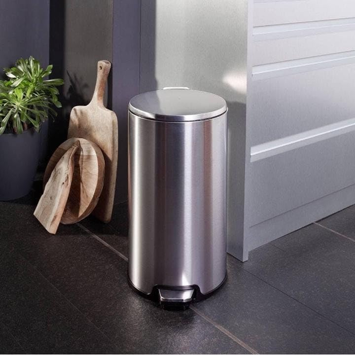 ZAL ZAIDAN - سلة مهملات تركي من الستانلس ستيل المقاوم للصدأ بغطاء متارجح مع دواسة قدم من زد ال زيدان يأتي بباسكت داخلي متأرجح لسهولة التنظيف 20 لتر فضي الضغط بالقدم.
