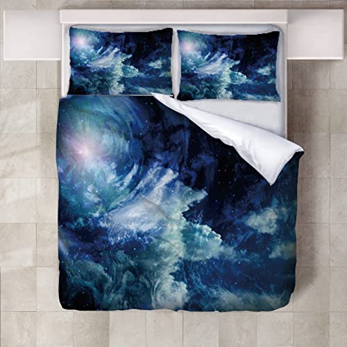 ZM/9KO - طقم غطاء لحاف بطباعة رسمة سماء من المايكروفايبر الناعم، سوستة مخفية، بوليستر، متعدد