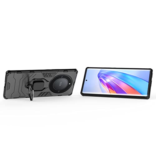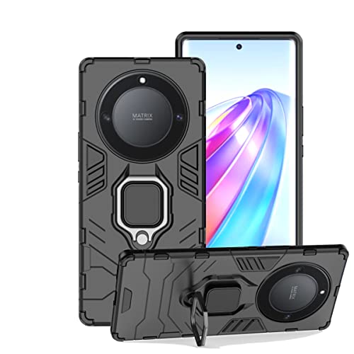 Chengmi - جراب حماية لموبايل هونر 5G X9a من زيمون شديد التحمل بطبقة مزدوجة مضاد للصدمات بالدرجة العسكرية مع مسند وحلقة مغناطيسية - اسود بولي كربونات يوريثين حراري