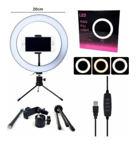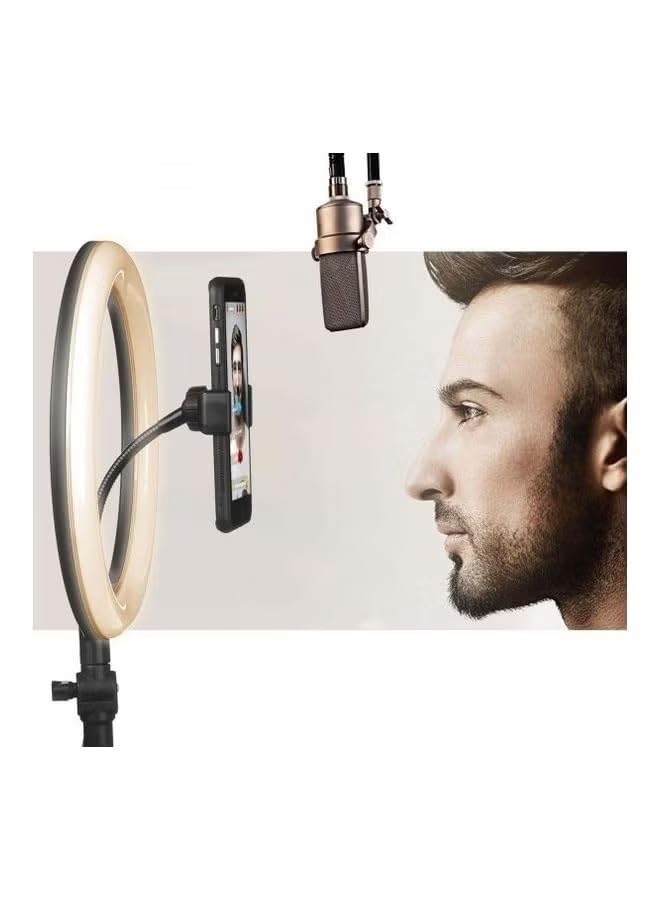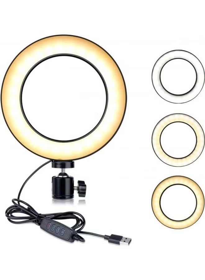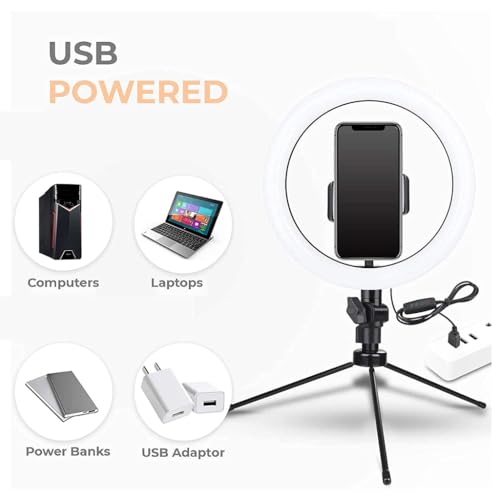 Generic - حلقة إضاءة ZMX-260 مقاس 25 سم للبث والتصوير مع حامل ثلاثي، إضاءة ليد بـ3 درجات حرارة، إمكانية ضبط السطوع، USB