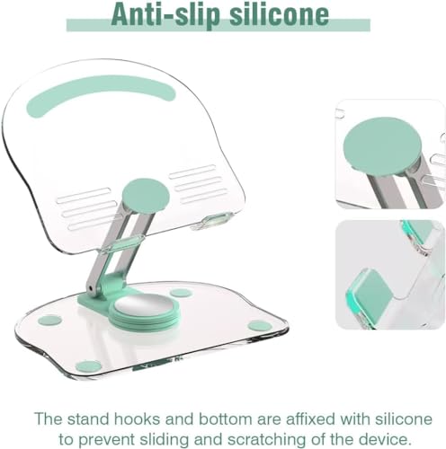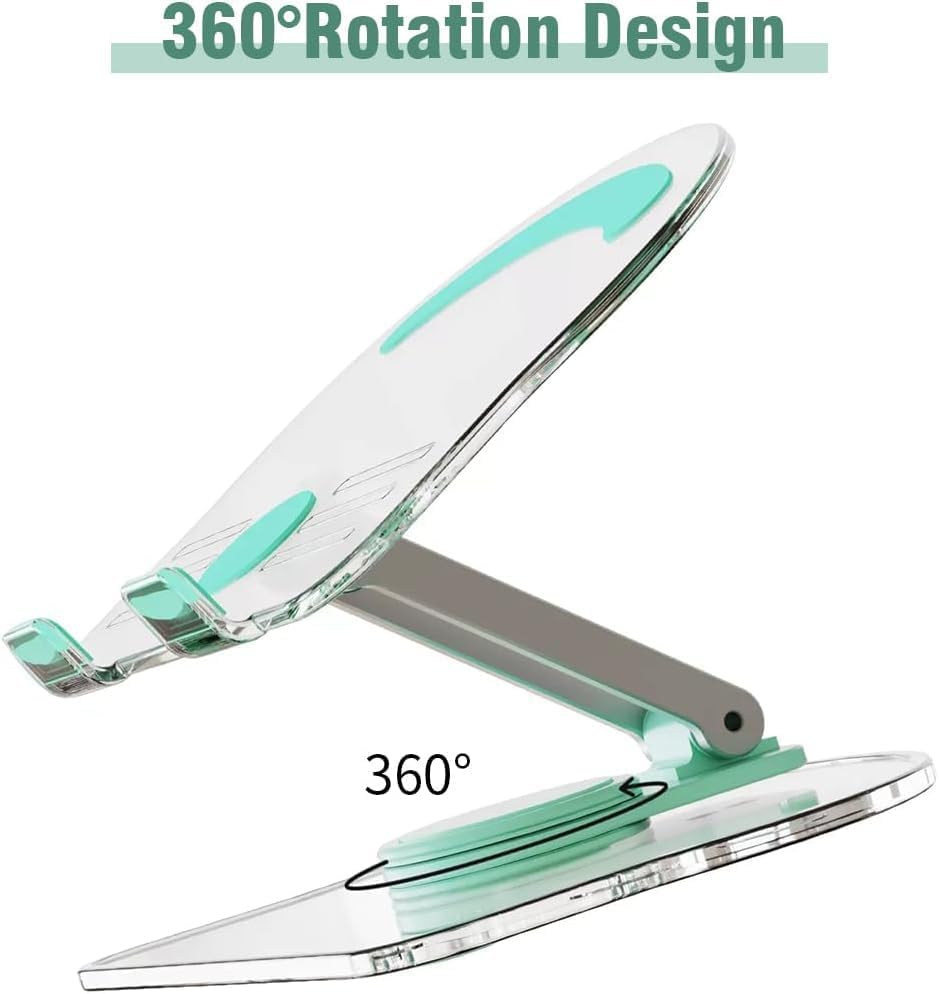 - تصميم مريح: تسمح قاعدة الأكريليك الدوارة بزاوية 360 درجة للحامل بالتدوير بسهولة، يمكنك تدوير الحامل المكتبي للحصول على زوايا مخصصة. تصميم المفصلة المزدوجة بزاوية 180 درجة لحامل سطح المكتب الأكريليك قابل للتعديل والطي بشكل تعسفي، مما يحرر يديك في سيناريوهات استخدام متنوعة.