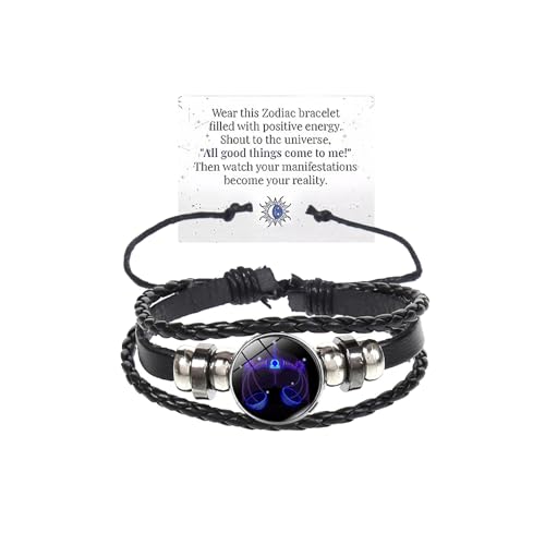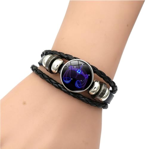 IQPDYV - سوار زودياك ساينز سبيريت حلقي عريض جلدي محبوك يدويا قابل للتعديل ويتوهج في الظلام هدية لمحبي الأبراج الفلكية متعدد الطبقات بتصميم 12 برج للنساء والرجال