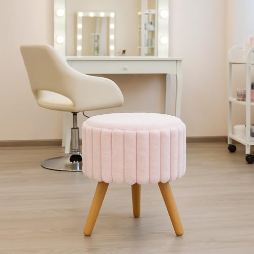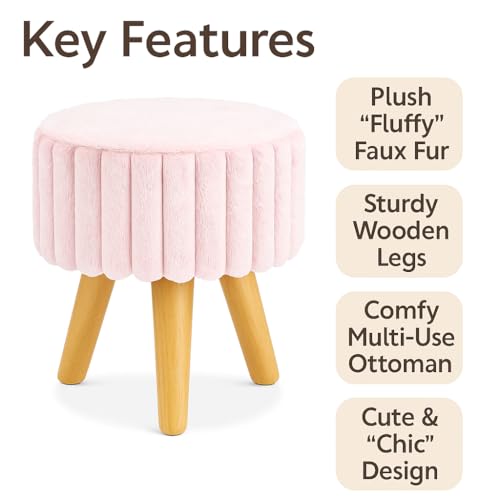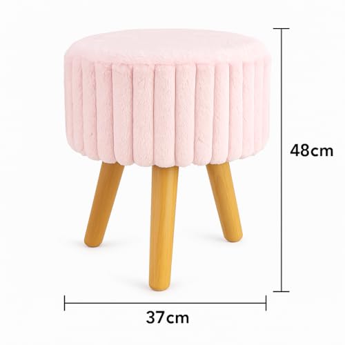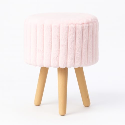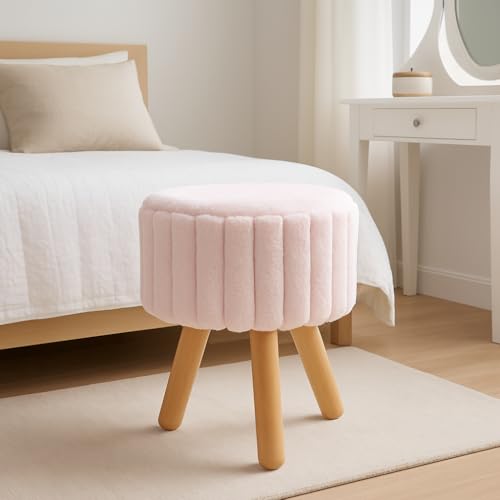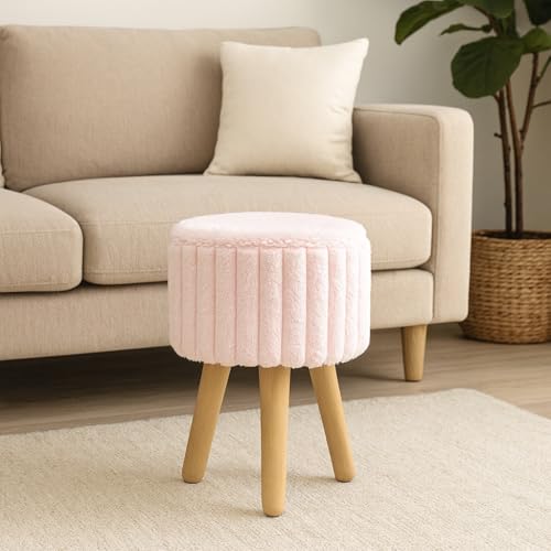 Generic - مقعد من الفرو الصناعي بأرجل خشب - مسند للقدمين وطاولة جانبية لغرفة المعيشة أو غرفة النوم أو صالون التجميل من زوني هوم بلون وردي