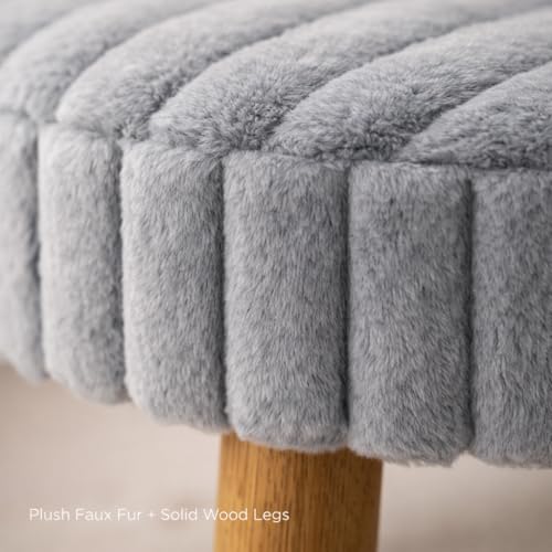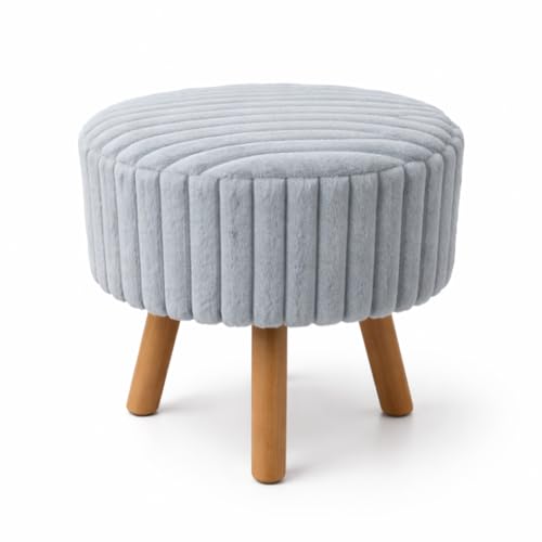 Generic - كرسي بوف من زوني هوم، مقعد فرو صناعي ازرق فاتح مع ارجل خشبية، كرسي بوف فاخر، اثاث غرفة النوم