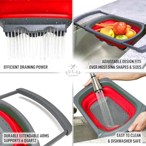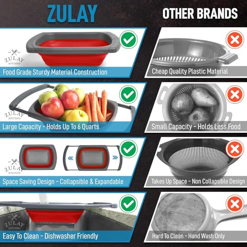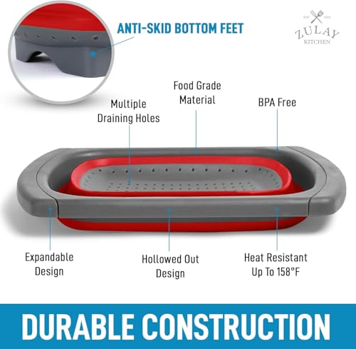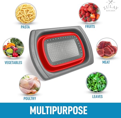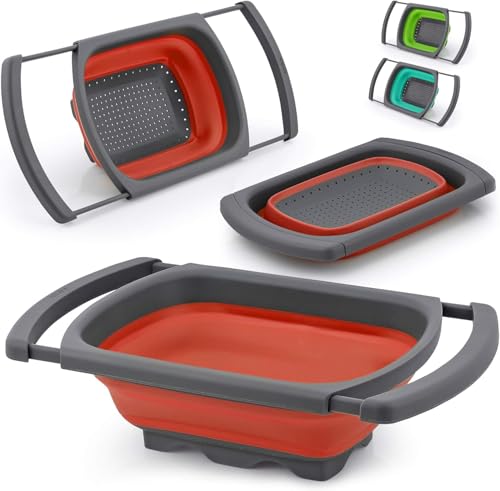 Generic - Zolai مصفاة سيليكون قابلة للطي للمطبخ، مصفاة طعام مع مقابض قابلة للتمدد، للمكرونة والخضروات والفواكه، رمادي وأحمر