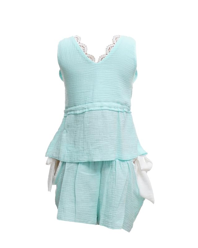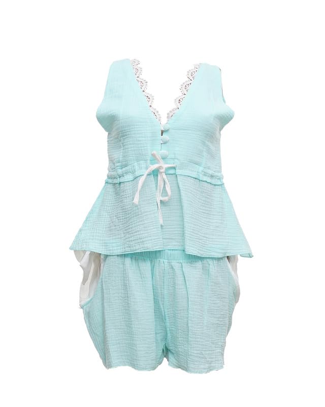 ZONA - طقم بيجامة للنساء مكون من توب بحمالات وشورت من القطن مقاس واحد من زونا - 9429