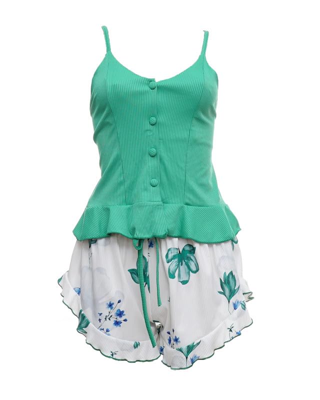 ZONA - طقم بيجامة مكون من توب بحمالات رفيعة وشورت من القطن للنساء من زونا - 9134