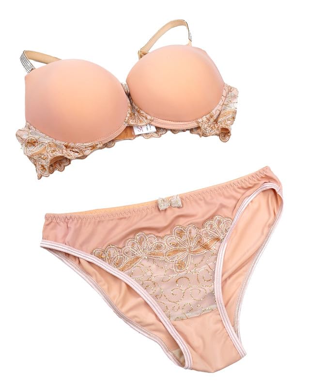 ZONA - طقم حمالة صدر بوش اب للنساء مع بانتيهات دانتيل من زونا، مقاس 2 اكس لارج 2XL - لون بيج