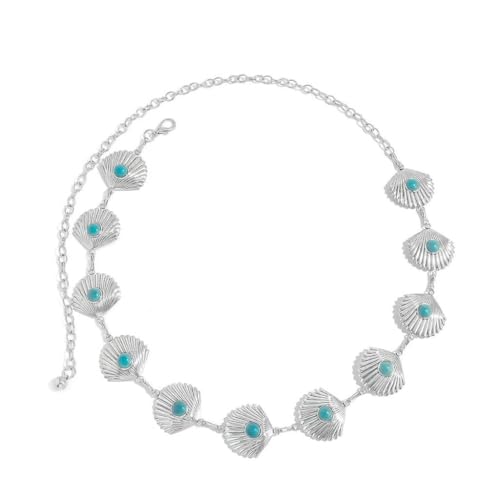 ZSOONNSHOP - حزام معدن أنيق بتصميم صدف فاخر مرصّع بحجر الفيروز يمنح إطلالة مميزة تجمع بين اللمسة الساحلية الراقية والجمال العصري، مناسب للمناسبات الخاصة والإطلالات اليومية . من زون شوب.