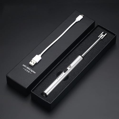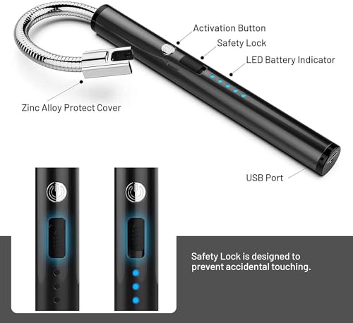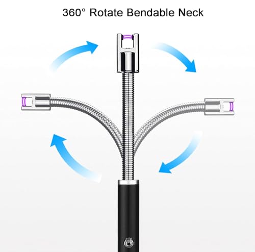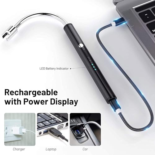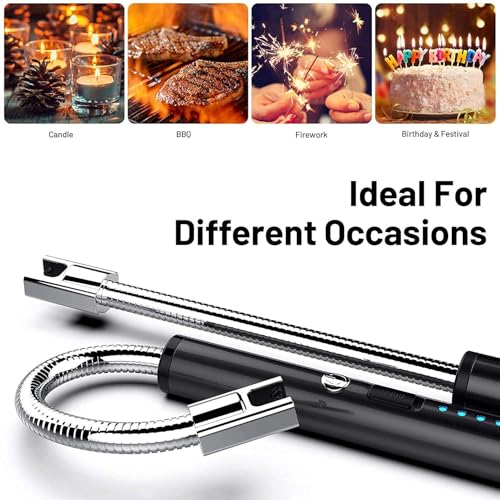 ZONEY - ولاعة شموع من زوني، ولاعة كهربائية دائرية مع شاشة LED للبطارية، مفتاح امان USB مرن 360 درجة برقبة طويلة للتخييم والطبخ والشواء والالعاب النارية (اسود)