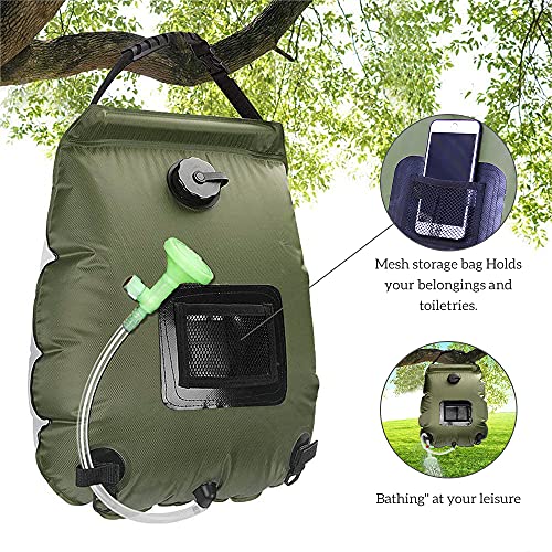 ZoneYan - دش التخييم يعمل بالطاقة الشمسية من زونيان شنطة للاماكن المفتوحة والحديقة والتخييم لتسخين المياه بسعة 20 لتر مع رأس وخرطوم ومقبض وشنطة تخزين متعدد الألوان