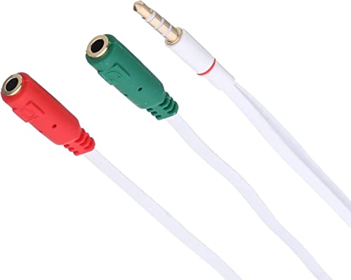 Zonic - كابل صوت ستيريو موزع على شكل Y مقاس 20 سم بمنفذ 3.5 ملم ذكر الى منفذين انثى، مناسب لميكروفون سماعة الرأس وسماعة الاذن من زونيك - ابيض، موديل Z1021