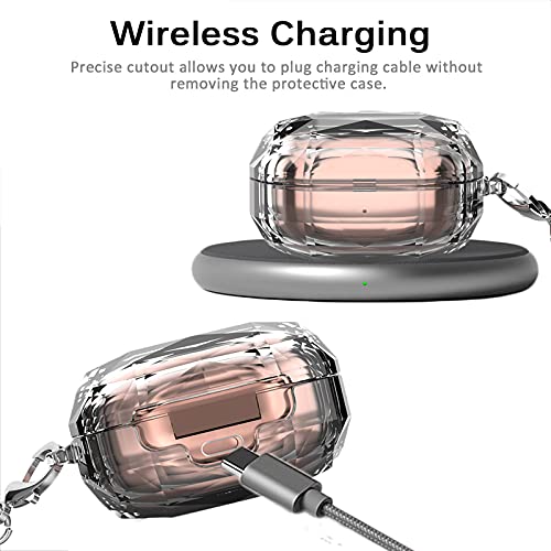 ZORBES - جراب حماية صلب عصري لسماعات سامسونج جالاكسي بادز برو (2021) وجالاكسي بادز 2 وجالاكسي بادز لايف (2020) مضاد للصدمات بتصميم هندسي مبتكر بقطع الماس من زوربيس (شفاف)