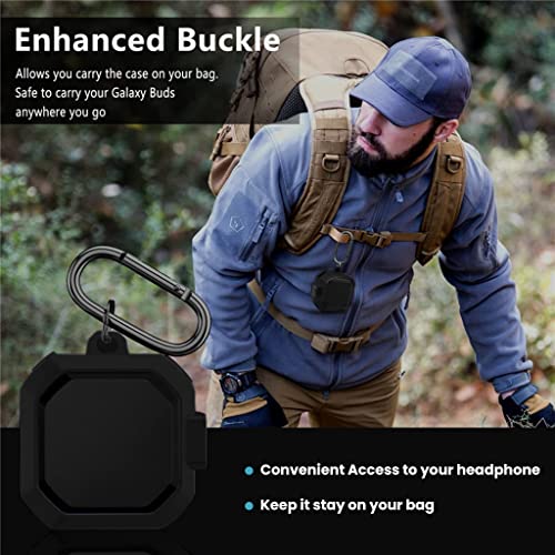 ZORBES - غطاء حماية من البولي كربونات والكروم مقاوم للصدمات لعلبة سماعات سامسونج جالاكسي بادز لايف 2020 - برو 2021 - 2 - مع قفل امان زوربس أسود