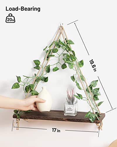 - رف ومنظم متعدد الأغراض: يوفر رف التعليق هذا إعدادًا ساحرًا ودافئًا لتذكاراتك المفضلة والزخارف الفنية ومناشف الحمام وما إلى ذلك. بفضل التصميم العصري والريفي البسيط، فإن هذه الأرفف الخشبية بنمط بوهو هي ديكور مثالي لغرفة المعيشة أو غرفة النوم أو الحمام أو المطبخ أو المزرعة أو الشقة أو المكتب. سيدهشك تشغيل الضوء بالتأكيد! هدية مثالية للانتقال إلى منزل جديد!